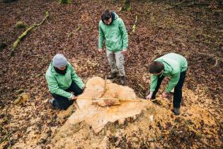 Wald-Expertin Sandra Hieke: Ein anderes Beispiel: Wir waren in einem wunderschönen alten Buchenwald im thüringischen Hainich. Ein solcher Wald ist ein Hotspot für Artenvielfalt, mit Tausenden von Pflanzen-, Käfer-, Vogel- und Säugetierarten. Deshalb gehört er auch zu einem europäischen Netzwerk aus Schutzgebieten, einem FFH-Gebiet. Die kleine Hufeisennase, eine in Deutschland vom Aussterben bedrohte Fledermausart, lebt beispielsweise in solchen Wäldern. Aber anstatt hier der Natur Schutz zu bieten, werden massenhaft Bäume gefällt. Der Hainich ist sozusagen ein Schutzgebiet ohne Schutz für den Wald und seine Bewohner. Besonders absurd: Als Spaziergänger:in hat man in Schutzgebieten häufig jede Menge Verbote zu respektieren, aber die Sägen dürfen in den meisten Schutzgebieten die Bäume plätten. Und das nennen wir Waldschutz!