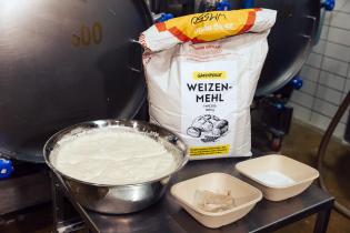 Fünf Tonnen sogenannten Futterweizens - C-Weizen der Sorte Elixer - erstehen wir bei einem Landhandel. Er hat einen Rohproteingehalt von 11,3 Prozent. Damit gilt dieser Weizen normalerweise als “nicht backfähig. Doch stimmt das wirklich? Der Proteingehalt ist ein wichtiges, aber nicht das einzige Kriterium für die Backfähigkeit. Im Rahmen der geltenden Klassifizierung ist es jedoch das entscheidende Kriterium. In der Stelzenmühle in Bad Wurzach wird der Weizen von Müller Hermann Gütler zu Mehl der Type 550 vermahlen. Nach drei Wochen Ruhezeit kann das Mehl nach Römerstein zu Bäckermeister Heinrich Beck gebracht werden. Hier muss es die Backprobe bestehen.