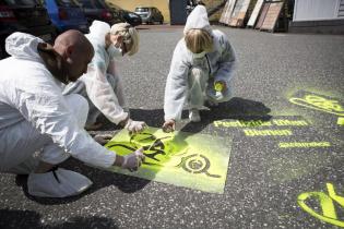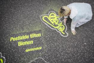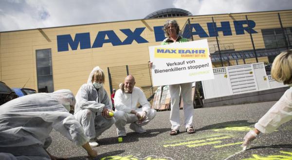 Während die drei Baumärkte die Gefahr ignorieren, hat Bauhaus bereits reagiert: Bereits ab September will das Unternehmen einige der Pestizide nicht mehr verkaufen. Die Aktivist:innen bauen vor den Baumarkt-Filialen einen Tatort um tote Bienen auf: Sie sprühen Bilder lebloser Bienen auf den Asphalt und markieren den Tatort mit Kreide. „Pestizide töten Bienen!“ ist daneben zu lesen. „Wer Bienenkiller verkauft, ist mitverantwortlich für das Bienensterben. Wir fordern die Baumärkte auf, Pestizide sofort aus den Regalen zu nehmen“, sagt Christiane Huxdorff, Landwirtschaftsexpertin bei Greenpeace.