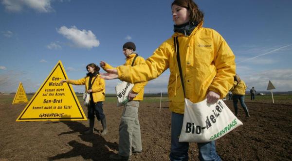 Der Gen-Test sollte auf einem Acker in Friemar bei Gotha gestartet werden. Gleich in doppelter Hinsicht eine zweifelhafte Premiere: Zum ersten Mal in Deutschland ging es um genmanipulierten Weizen und zum ersten Mal wurden der Öffentlichkeit wesentliche Informationen über die gentechnische Veränderung des Saatguts vorenthalten. Doch die Heimlichtuerei fiel auf. Greenpeace-Aktivisten reagierten letzte Woche, indem sie das 30 mal 40 Meter große Testfeld absperrten und mit gelben Warndreicken markierten. Dann säten sie auf der Fläche Bio-Weizen aus.