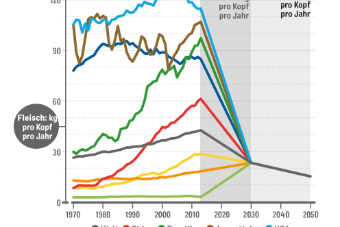 Für Deutschland hat Greenpeace vorgerechnet, dass eine Halbierung des Fleischkonsums eine ökologischere Landwirtschaft möglich macht: Durch weniger Fleisch, weniger Nutztiere, weniger Futteranbau können wir die Landwirtschaft zukunftsfähig zu gestalten.