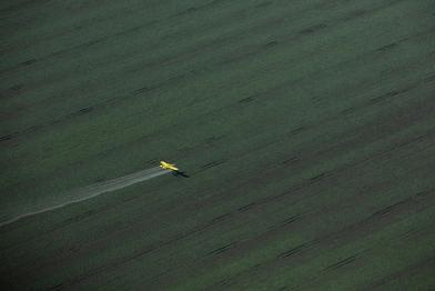 Flugzeug versprüht Petizide auf einem riesigen Soja-Feld in Brasilien