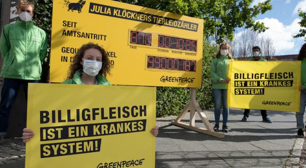 “Das ist ein klares Signal an die Regierung. Sie kann sich nicht länger aus der Verantwortung für die katastrophalen Zustände in der Fleischbranche stehlen”, sagt Greenpeace-Landwirtschaftsexperte Martin Hofstetter. “Eine konsequente Agrarreform ist längst überfällig. Die Landwirtschaft braucht Planungssicherheit und finanzielle Anreize, um auf eine artgerechte Tierhaltung umzustellen. Um Klima und Umwelt zu schützen, muss die Zahl der in Deutschland gehaltenen Nutztiere und der Fleischkonsum in den kommenden Jahren drastisch sinken. Fleisch muss teurer, pflanzliche Lebensmittel müssen günstiger werden."