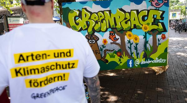 Um die Europa-Parlamentarier von CDU und CSU aufzufordern, mit der GAP-Reform jetzt die Agrarwende einzuleiten, sind Aktivistinnen und Aktivisten von Greenpeace am 26. Juli in Hannover zu einer dreiwöchigen Tour durch zehn deutsche Städte gestartet. Dort werden sie jeweils an zentralen Plätzen überdimensionale Postkarten mit Forderungen an die Europa-Abgeordneten aus der Region gestalten: Graffiti-Künstler bemalen die Karten mit Motiven einer Landwirtschaft, die das Klima schont, Böden, Gewässer und Artenvielfalt erhält und Nutztieren ein artgerechtes Leben ermöglicht. Auf der Rückseite der Karte werden Bürgerinnen und Bürger ihre Vorstellungen einer zukunftsfähigen Landwirtschaft festhalten.