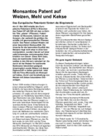 Exemplarisch: das Monsanto-Patent EP 445 929, erteilt im Mai 2003 auf die genetischen Anlagen, die für die besonderen Backeigenschaften einer ursprünglich indischen Weizensorte verantwortlich sind.