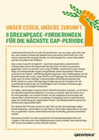 >>> Greenpeace hat in einem Papier acht Forderungen für die künftige Agrarpolitk zusammengestellt. Unter www.abl-ev.de/abl-punktesystem legt die AbL ein Konzept vor, wie Agrarsubventionen Umwelt- und Tierschutz honorieren können.