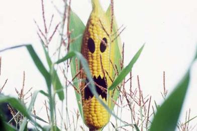 Etwa 50 Greenpeace-Aktive haben am Dienstag eine der größten Anbauflächen für genmanipulierten Mais in Brandenburg schon von weitem sichtbar gemacht: Über dem Acker des Agrargroßbetriebes LVG Seelow im Landkreis Märkisch-Oderland schwebte an einem Drachen ein 16 Meter hohes Transparent mit dem Bild eines Gen-Mais-Monsters.