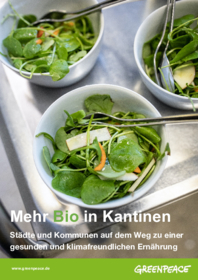Für eine flächendeckende Umstellung sollten Städte Ziele für einen verbindlichen Anteil an bio-regionalen Lebensmitteln beschließen. Greenpeace fordert mindestens 60 Prozent Anteil in maximal fünf Jahren, 100 Prozent in maximal zehn Jahren und 100 Prozent bei tierischen Lebensmitteln von Beginn an. Das geht nur mit mehr Investitionen von Bund, Ländern und Kommunen für Umbau, Beratung und Ausbildung. Zudem sollte der Anteil von Bio-Lebensmitteln in der öffentlichen Verpflegung regelmäßig überprüft und veröffentlicht werden.