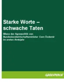 Tierwohl, Höfesterben, Klimaschäden durch Anbau und Tierhaltung – bei seinem Antritt als Bundeslandwirtschaftsminister verspricht Cem Özdemir im Dezember 2021, die dringenden Probleme der Landwirtschaft anzupacken und wirkungsvolle Maßnahmen zu ergreifen. Nach einem Jahr zieht Greenpeace Bilanz – was konnte der erst zweite grüne Minister im BMEL bisher umsetzen und wo blieb es bei großmundigen Ankündigungen?