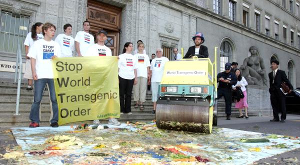 Hintergrund des Greenpeace-Protests in Genf ist eine Klage der USA gegen die EU bei der WTO, um die Handelsinteressen von Monsanto durchzusetzen. Der US-Konzern drängt mit aller Macht mit seinen Gen-Produkten auf den Weltmarkt. 90 Prozent aller weltweit angebauten Gen-Pflanzen stammen derzeit von Monsanto.