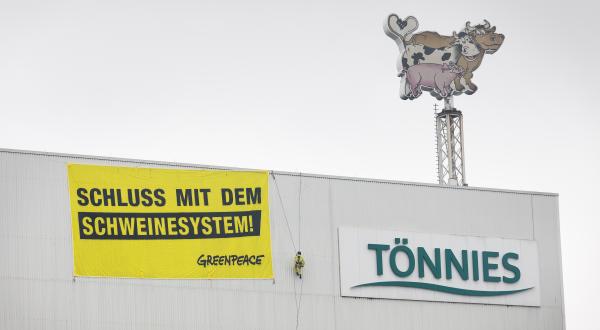 Protest von Greenpeace-Aktiven bei Tönnies-Schlachthof