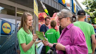 Greenpeace informiert vor Lidl-Filialen über Antibiotika in Billigfleisch