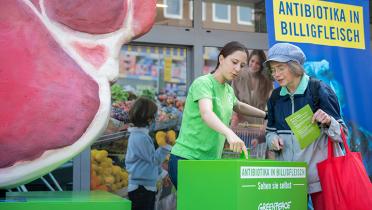 „Der sorglose Einsatz von Antibiotika in der Massentierhaltung ist eine Gefahr für die Gesundheit der Menschen“, sagt Christiane Huxdorff, Greenpeace-Expertin für Landwirtschaft. Das muss aufhören – zum Wohl des Menschen, aber auch der Tiere, die unter unwürdigen Bedingungen ihr Dasein bis zur Schlachtung fristen. „Nur bessere Tierhaltung mit weniger Antibiotika kann die Fehlentwicklung stoppen.“
