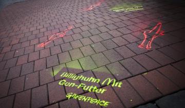 In 43 Städten sind Greenpeace-Aktivisten unterwegs, um McDonald‘s den Stinkefinger zu zeigen. Die Fenster der Fastfood-Filialen plakatieren sie mit Hühnerkrallen-Motiven in eindeutiger Geste. „Stoppt genmanipuliertes Futter!“ und „Stoppt Massentierhaltung!“ steht auf den Plakaten. Damit fordern sie den Fastfood-Konzern auf, kein Billigfleisch mehr einzusetzen.
