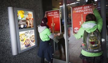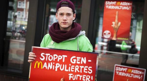>>> Greenpeace fordert von McDonalds, keine Gentechnik mehr in der Produktion von Fleisch, Eiern und Milch einzusetzen. Das Unternehmen muss artgerechte Tierhaltung und sinkenden Einsatz von Antibiotika in die Unternehmensleitlinie aufnehmen. Protestieren Sie mit!