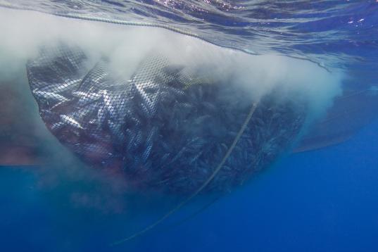 Auf der Jagd nach dem Echten Bonito, dessen Bestände im Pazifik derzeit noch als relativ stabil gelten, werfen die Industriefischenden riesige Ringwadennetze aus. Um möglichst viele Fische anzulocken, setzen sie zudem sogenannte Fischsammler (Fish Aggregation Devices, FADs) ein. Diese schwimmenden Plattformen täuschen den Meerestieren Schutz vor und locken sie auf diese Weise an.