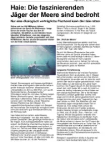 Angebliche „Antikrebspillen“ aus getrocknetem Haiknorpel finden reißenden Absatz: Krebskranke in den USA und in Europa hoffen auf Hilfe durch diese vollkommen wirkungslosen Präparate. „Ebenso könnten Kurzsichtige versuchen, ihre Sehkraft durch den Verzehr von Adlerfleisch zu stärken“, kommentiert Haiforscher und Biochemiker Carl Luer, der an einem Meeresinstitut in Florida/USA Haiknorpel untersucht hat.