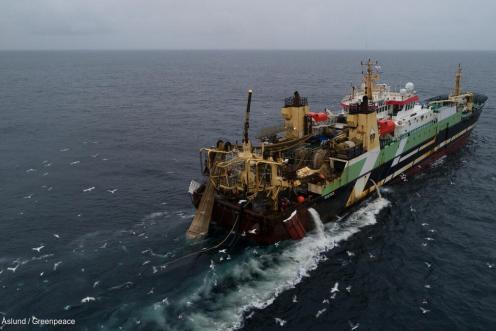 Auf hoher See werden oft die Fänge vom Fangschiff auf Kühlschiffe übergeben, eine als Transshipment bezeichnete Praxis. Dabei können illegale Fänge verschleiert und die Fangschiffe mit neuem Proviant versorgt werden. So bleiben einige Fangschiffe zusammen mit ihrer Crew zum Teil jahrelang auf See ohne jemals einen Hafen anzulaufen – “für die Crew an Bord und ihre Familien an Land eine unzumutbare Situation”, sagt Franziska Saalmann, Fischereiexpertin bei Greenpeace.