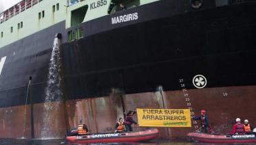 Greenpeace protestiert gegen Fangmethoden des Supertrawlers Margiris