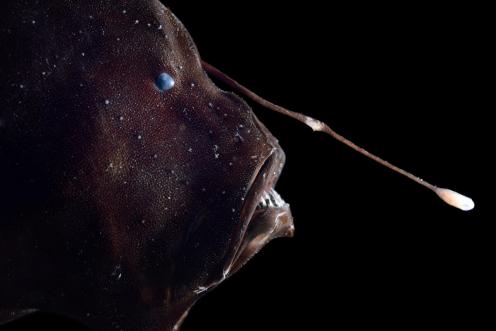 - Der Anglerfisch: Weibliche Anglerfische tragen einen leuchtenden Köder an der Stirn, um Beute anzulocken.