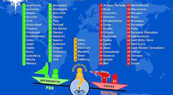 Die Kenntnis über das Abstimmungsverhalten der einzelnen Länder verdanken wir einem Sieg der Walschützer: Seit Jahren versuchen die Walfang-Befürworter geheime Abstimmungen durchzusetzen. Das könnten sie mit einfacher Mehrheit erreichen. Doch nur 30 Länder votierten für geheime Abstimmungen, 33 dagegen, 1 Land enthielt sich. Dänemark war für offene Abstimmungen, die Walfangländer Norwegen, Island und Japan dagegen. In Zukunft können derartige Abstimmungen aber leicht anders ausfallen und dann jegliche Entscheidungen der IWC undurchsichtig machen.