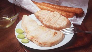 • "Schillerlocke" und Haisteak angerichtet auf einem Teller, Mai 1999