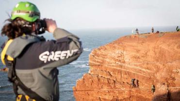 Greenpeace-Kletteraktion gegen Plastiknester auf Helgoland