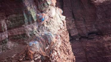 Helgoland liegt 40 Kilometer vom Festland entfernt in der Nordsee, der Vogelfelsen der Insel, auch Lummenfelsen genannt, ist das kleinste Naturschutzgebiet Deutschlands. Doch Plastik aus dem Meer bedroht diesen ökologischen Schatz. Für diese Einschätzung genügt schon der bloße Augenschein: Immer wieder werden Plastikfäden, Seile und Netzreste am Ufer angeschwemmt – Hinterlassenschaften der industriellen Fischerei, vor allem aus der Nordsee.