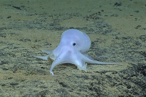 Die Tiefseekrake "Casper", entdeckt an der Necker Ridge, Hawaii, in 4290 Metern Tiefe. Ihr Mantel ist etwa 6,4 Zentimeter lang. Diese Aufnahme entstand mit dem US-amerikanischen Tauchroboter Deep Discovery.”