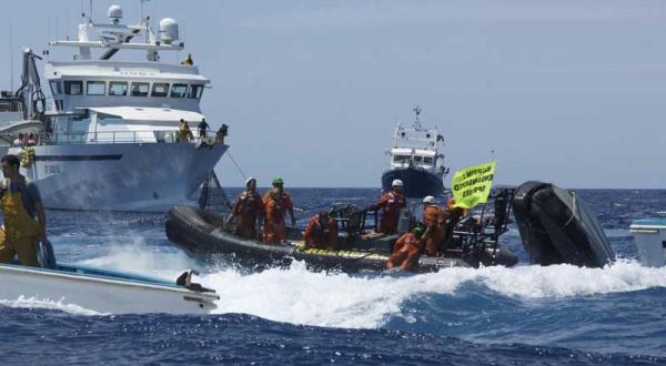 Greenpeace setzt sich seit Jahren für den Schutz des Blauflossen-Thunfischs ein. Mit den Schiffen Rainbow Warrior und Arctic Sunrise protestierte Greenpeace Anfang Juni im Mittelmeer gewaltfrei für einen sofortigen Stopp des Blauflossen-Thunfisch-Fanges. Das Mittelmeer ist das wichtigste Aufzuchtgebiet für Blauflossen-Thunfisch. Damit sich die Bestände erholen können, müssen die Laichgebiete unter Schutz gestellt werden damit sie vor den Fischern sicher sind.