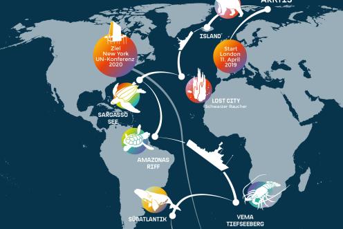 Die Reise startet in London und endet im Frühjahr 2020 bei den Vereinten Nationen in New York. Diese beraten bis dahin einen rechtsverbindlichen Vertrag zum Schutz der Hochseegewässer. Eine historische Chance – die Sie mit Ihrer Stimme beeinflussen können.