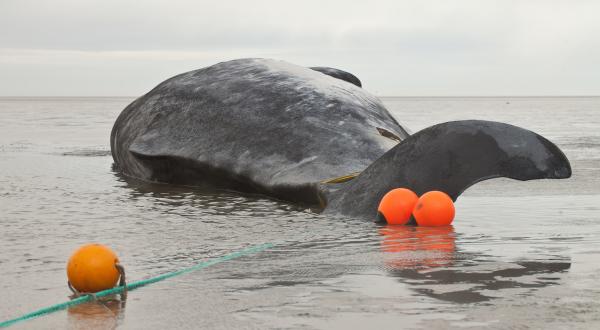 Bei ihren Wanderungen in die Paarungsgebiete bei den Azoren verirren sich Pottwalbullen manchmal bis in die flache südliche Nordsee. Wenn die Tiere in Ufernähe geraten, sind sie in Gefahr zu stranden.