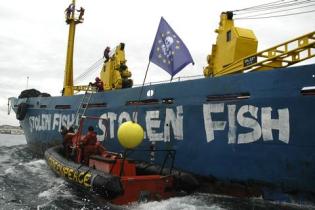 Die Greenpeace-Crew dokumentierte einen aktuellen Fall vor Westafrika: Wir verfolgten einen Trawler - beladen mit 200 Tonnen gestohlenem Fisch - von Guinea (Westafrika) bis nach Las Palmas (Spanien). So konnte Greenpeace beweisen, dass der Hafen von Las Palmas noch immer ein Eldorado für das Reinwaschen von illegalem Fisch ist.