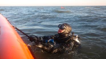 Greenpeace taucht vor Borkum nach den verlorenen Containern der MSC Zoe