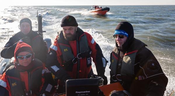 Am Sonntag erzielten die Crews der Schlauchboote und der Beluga, die sich der Suchaktion anschloss, dann den mittlerweile unvermuteten Treffer: Das Echolot schlug an einer Stelle aus, die ursprünglich gar nicht als Fundort in Betracht kam – Greenpeace vermutet, dass es sich bei dem Objekt um einen der über Bord gegangenen Frachtcontainer handelt. „Die vor einer Woche georteten Container haben sich durch Wind und Strömung fortbewegt“, erklärt Manfred Santen. Das hat Konsequenzen für das gesamte Bergungsprojekt: „In deutschen und niederländischen Gewässern werden die Ortungsfahrten vermutlich wiederholt werden müssen.“