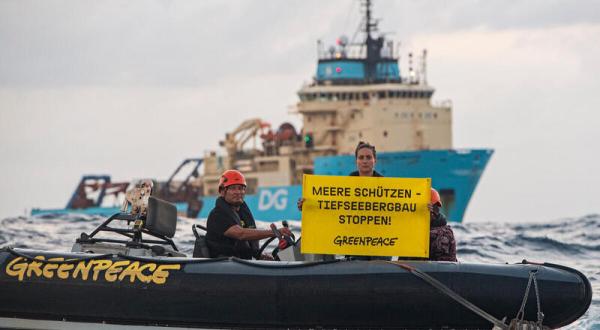 Die Industrie drängt und erste Pilotversuche sind in den Explorationsgebieten des Pazifik bereits gestartet. Doch Greenpeace-Aktivist:innen an Bord der “Rainbow Warrior” wollen nicht tatenlos dabei zusehen, wie internationale Konzerne und die Bergbauindustrie einzigartige Ökosysteme in der Tiefsee langfristig schädigen und ganze Arten auslöschen. Erstmals protestierten die Umweltschützer:innen jetzt zwischen Mexiko und Hawaii gegen die kanadische Firma DeepGreen Metals. Diese erkundet derzeit in der Clarion-Clipperton-Zone mit Hilfe des Industrieschiffes “Maersk Launcher”, wie sie künftig am dortigen Meeresgrund Rohstoffe ausbeuten kann. „Unsere Meere können die steigenden Temperaturen und Massen an Plastikmüll kaum verkraften“, sagt Dr. Sandra Schöttner, Meeresbiologin bei Greenpeace. „Industrieller Tiefseebergbau würde das rasante Artensterben in den Ozeanen beschleunigen. Diese ökologische Katastrophe muss verhindert werden.“