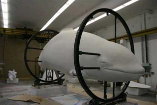 Vom Stahlbauer geht es in die Werkstatt des Künstlers. Dort wird das Gerüst mit einer Schicht aus Walspeck verkleidet - Styroporblöcken, aus denen der Figurenbauer ähnlich einem Bildhauer die endgültige Form herausschnitzt und -raspelt. Dann wird gespachtelt, geschliffen, gestrichen.