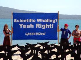 In einer Welt, in der die internationale öffentliche Meinung ignoriert wird und in der hoher diplomatischer Druck gescheitert ist, hofft Greenpeace, dass die Konsumenten ein- für allemal zeigen können, dass Walfang schlecht fürs Geschäft ist, so Shawn Rattenbury, Leiter der gegenwärtigen Greenpeace-Aktion im Südpolarmeer.