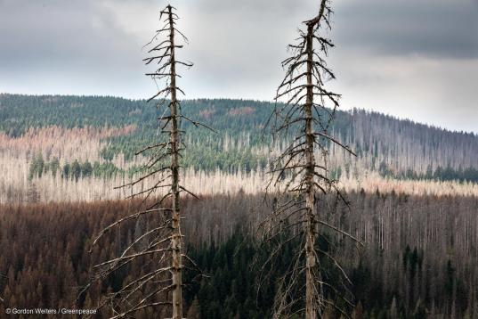 Dieser Ansatz fällt Deutschland seit Jahren zunehmend auf die Füße. Die an ungeeigneten Standorten gepflanzten Fichten leiden unter der auch in Deutschland zunehmenden Trockenheit und infolgedessen unter Insektenbefall. Selbst Waldbrände, früher hauptsächlich ein Thema wärmerer und trockenerer Gegenden, werden zunehmend zum Problem. Eine naturnähere Bewirtschaftung sowie mehr Schutzgebiete ohne Holznutzung sind daher wichtiger denn je, um den Wald zu erhalten. Die Akteur:innen haben das Problem “Fichtenplantage” zwar erkannt, das notwendige Umdenken – hin zur Betrachtung des Waldes als Ökosystems, weg vom Paradigma des Holzlieferanten –, findet bisher jedoch bei politischen Entscheidungsträger:innen und der konventionellen Forstwirtschaft nicht statt. Greenpeace zeigt mit den “Wegen aus der Waldkrise”, welche Vorteile ein neues Denken beim Waldschutz hätte – auch für das Klima.