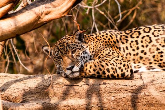 Der Jaguar ist die größte Raubkatze Amerikas. Er kann einem Leoparden ähneln, hat aber größere Flecken in einem anderen Muster. Der Jaguar hat den stärksten Biss aller Raubkatzen. Das ermöglicht ihm, Alligatorenhaut und Schildkrötenpanzer zu durchbeißen. Er lebt bevorzugt in dichten Wäldern, wo er sich gut verstecken kann, zieht aber zur Jagd auch in offenere Landschaften. Der Jaguar frisst alle Tiere, die ihm vor die Schnauze kommen, seien es Fische, Vögel, Reptilien oder Säugetiere. Jaguare leben allein und sind nachtaktiv. Abholzung und andere Zerstörungen haben die Hälfte des ursprünglichen Lebensraums des Jaguars vernichtet, und er ist in den USA, Uruguay und El Salvador ausgerottet. Die größte Population befindet sich im Amazonasbecken. Doch auch diese ist bedroht, etwa durch Wilderei und Lebensraumvernichtung. Je näher die Menschen an das Gebiet der Jaguare heranrücken, desto mehr Konflikte entstehen zwischen den Großkatzen und Menschen. Der Jaguar hat derzeit den Status stark gefährdet.