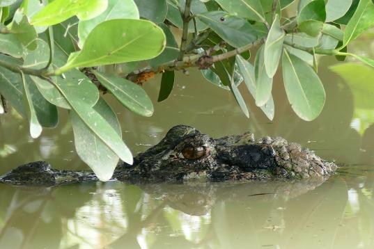 Der Schwarze Kaiman ist die größte der sechs in Mittel- und Südamerika lebenden Kaimanarten und gehört zur Familie der Alligatoren. Das Männchen kann bis zu vier Meter lang werden. Schwarze Kaimane leben in einer Vielzahl unterschiedlicher Lebensräume im und um den Amazonas: in ruhigen Flüssen, Seen, überschwemmten Feuchtgebieten, aber auch Savannen. Der Schwarze Kaiman ernährt sich von Fischen, Reptilien (einschließlich anderer Kaimane) und größeren Säugetieren wie Capybaras und Rindern. Junge schwarze Kaimane ernähren sich hauptsächlich von Krebstieren. Während der Trockenzeit baut der Schwarze Kaiman große Erdhügel mit einem Durchmesser von 1,5 Metern, in denen er seine Eier ablegt. Ein Kaimanweibchen kann 50-60 Eier legen und bleibt immer in der Nähe des Nestes. Es hilft den Jungtieren, nach 45-60 Tagen beim Schlüpfen, sobald die Regenzeit beginnt. Vor allem aufgrund der illegalen Jagd gilt die Art als gefährdet.