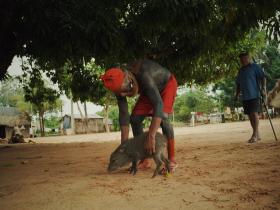 Drei Kinder toben über den Platz im Dorfzentrum. Plötzlich flattert es um uns herum, als sich hunderte gelbe Schmetterlinge in die Luft schwingen. Träge Hunde dösen im Schatten der Bäume, ein zahmes Wildschwein durchstöbert den Boden. Unter einem schattenspendenden Dach haben sich die Dorfältesten versammelt – manche in traditioneller Kleidung, andere in T-Shirts und Shorts. Wir sind im Dorf Piaraçu in Capoto Jarina. Es liegt im brasilianischen Bundesstaat Mato Grosso, im Herzen Brasiliens im Westen des Amazonas-Gebietes. Die Region gehört zum Siedlungs- und Schutzgebiet der indigenen Kayapó, geprägt von dichter Regenwaldlandschaft, Flüssen und einer weitgehend unberührten Natur – noch.