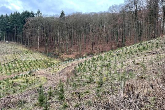 Gesche Jürgens: Wir haben dort dokumentiert, dass auf kahlgeschlagenen Flächen vor allem Douglasien gepflanzt wurden. Das ist eine Baumart, die definitiv nicht dem Erhalt von Buchenwäldern dient, im Gegenteil – sie hat die Tendenz, andere Baumarten sogar zu verdrängen. Die Kahlschläge sind ein radikaler Eingriff in das Mikroklima. Der Wald verliert seine Fähigkeit, sich selbst Kühlung zu verschaffen. Angrenzende Bäume, insbesondere Buchen, können durch ungefilterte Sonneneinstrahlung in Stress geraten und absterben, ein Domino-Effekt. Das ist gerade bei zunehmenden Auswirkungen der Klimakrise zentral, da Trockenheit und auch Hitze insbesondere im Sommer zunehmen. Deswegen ist es wichtig, Buchenwälder möglichst geschlossen und kühl zu halten.
