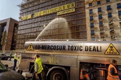 Wegen wachsender Widerstände sieht sich die EU-Kommission gezwungen, eine Zusatzvereinbarung zu Regenwald- und Klimaschutz mit den vier Mercosur-Ländern auszuhandeln. “Ein Prozess, der vollkommen intransparent abläuft und sich noch hinzieht”, sagt Greenpeace-Handelsexperte Jürgen Knirsch. “Greenpeace wird aber dranbleiben und weiter eine neue Sichtweise auf den Handel fordern – bei der Produktion, Handel und Konsum nicht an erster Stelle stehen, sondern soziale und ökologische Fragen.”