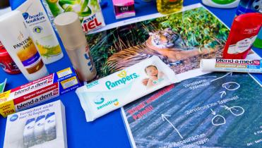 Produkte ohne Palmöl aus Regenwaldzerstörung: Das fordern ehrenamtliche Greenpeace-Aktivisten in vielen deutschen Städten. Palmöl wird in zahlreichen Produkten von Procter & Gamble eingesetzt. Greenpeace-Recherchen haben ergeben, dass der Konzern von Produzenten kauft, die den Lebensraum Regenwald zerstören.
