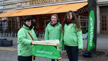 Darüber wollen die Aktivisten die Passanten informieren, welche vor Ort direkt die Greenpeace-Petition unterschreiben können. Anhand eines Stadtplans zeigen die Ehrenamtlichen beispielhaft die Fläche von vier Quadratkilometern, die in Indonesien täglich für den Anbau von Ölpalmplantagen zerstört wird. Die Greenpeace-Aktivisten wollen mit der Aktion auf die massive Umweltzerstörung aufmerksam machen.