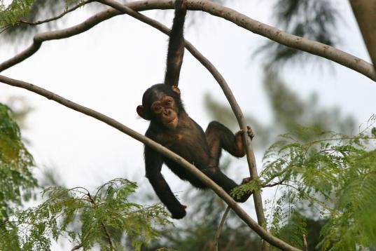 Ein junger Schimpanse im Kongo. Schimpansen sind durch die Zerstörung ihres Lebensraums vom Aussterben bedroht.