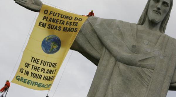 Die Zukunft des Planeten liegt in euren Händen! Diese Botschaft hat am Donnerstag ein Banner hoch über den Dächern Rio de Janeiros verkündet. Greenpeace-Aktivisten hatten den Schriftzug zuvor an einem Arm der weltberühmten Christus-Statue befestigt. Es ist ein Appell an die Vertreter aus 188 Nationen, die in den nächsten Wochen in Brasilien über die Artenvielfalt beraten.