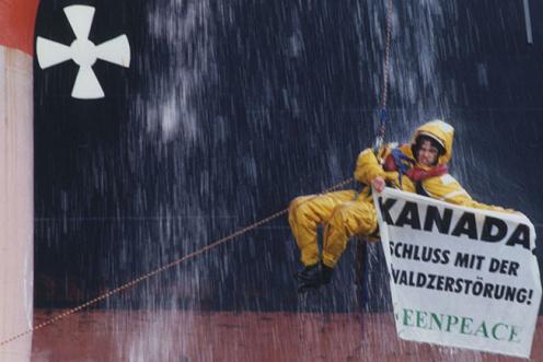 • 1993 Aktion gegen Abholzung des kanadischen Regenwaldes