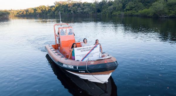 Gemeinsam mit Greenpeace Brasilien und den Menschen aus den traditionellen Gemeinschaften hängte Greenpeace Deutschland Schilder an dem Manicoré Fluss aufgehängt, die zeigen, dass die Menschen hier die Nutzungsrechte des Gebiets habe (siehe großes Foto oben). Das soll Eindringlinge aufhalten und ein wichtiges Zeichen setzen.